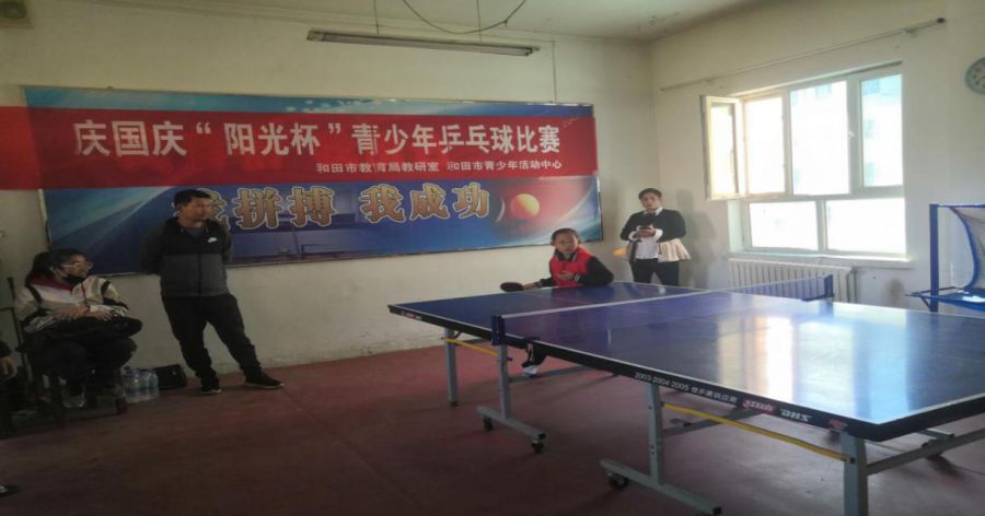 经研究决定,为提高青少年乒乓球运动技术和健康水平,和田市青少年活动中心于九月底、十月初在举办了“阳光杯”乒乓球比赛,赛程顺利圆满。