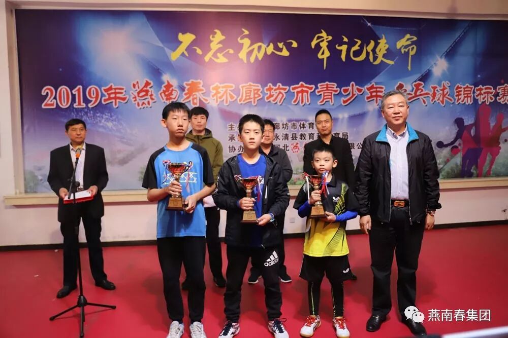 2019年10月20日,备受关注的“燕南春”杯2019年廊坊市青少年乒乓球锦标赛圆满落幕。经过两天来的比拼,多轮的较量,在男女单项比赛中,固安代表队、廊坊开发区代表队、三河代表队荣获第一名,男女团体比赛中,固安代表队夺得桂冠!