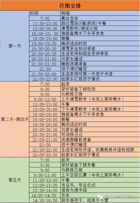 往返车辆 五天滑雪票 食宿 教练费用 生活老师费用