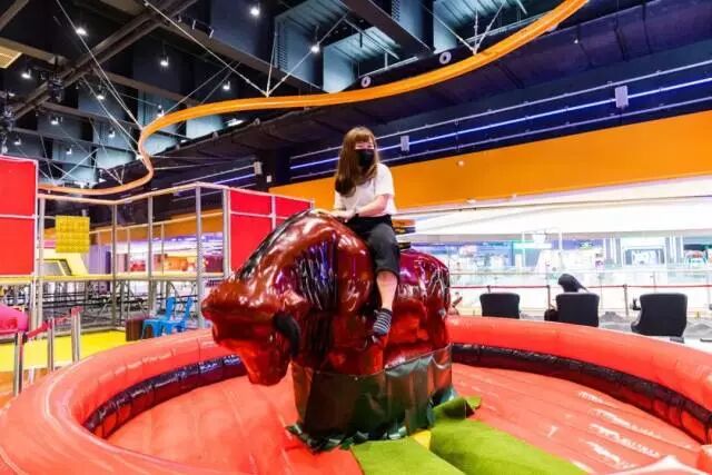旋转、跳跃、起飞、落地… 一次性get花式蹦床、AR攀岩滑雪体验、蛋型机、疯狂斗牛等多种项目