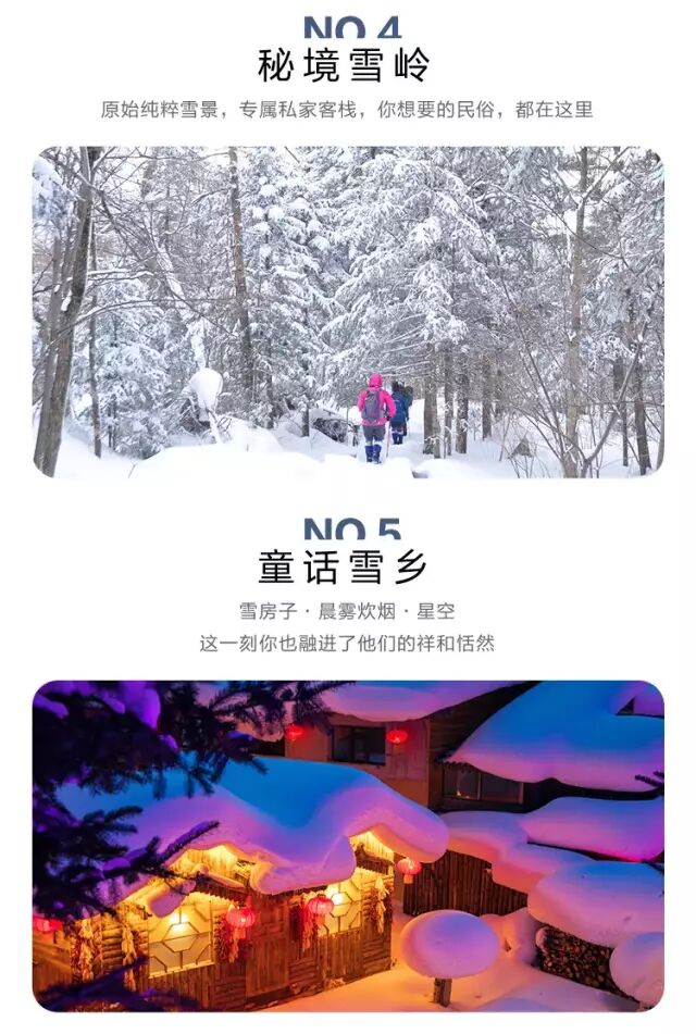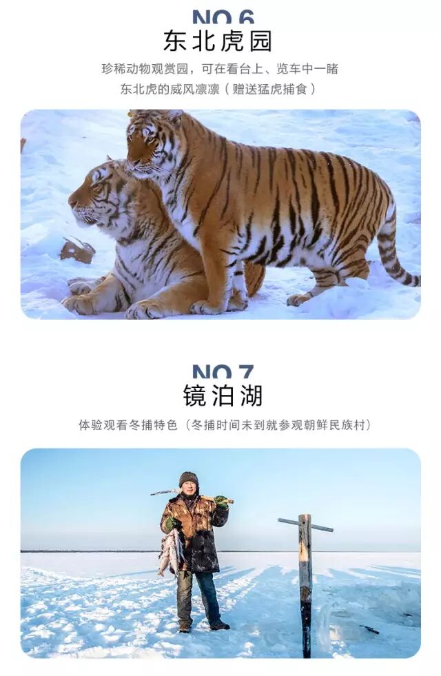 4、门票:亚布力3小时滑雪包含雪鞋雪板雪杖使用、雪岭虎峰岭门票、马拉爬犁门票、雪乡门票+往返环保车、林海雪原徒步穿越门票、虎林园门票、万科3小时滑雪包含雪鞋雪板雪杖使用、雾凇岛门票;