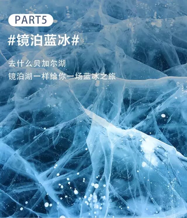 镜泊湖会由于上升的气体形成特有的气泡冰,蓝冰,冰裂,这时候的镜泊湖呈现的不再是平静流淌的湖面,而是任你驰骋的冰层,大气的让你近距离看到她的美和壮阔,置身其中,仿佛于世界的尽头。