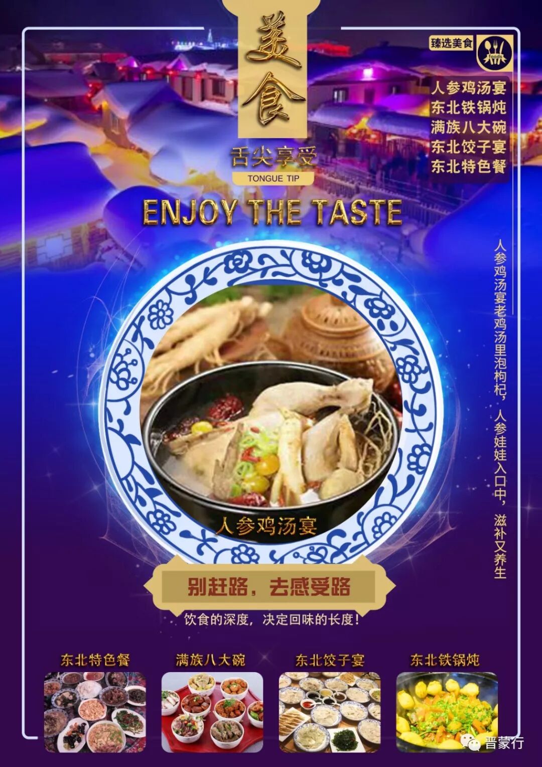 东北美食:人参鸡汤宴、东北铁锅炖、满族八大碗、东北饺子宴、东北农家宴