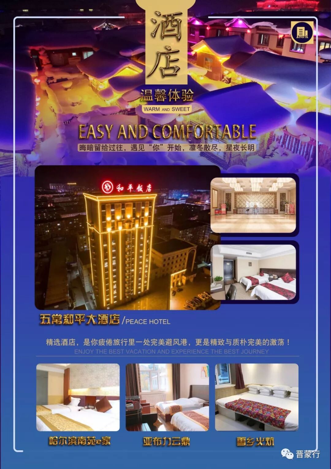 住宿:五常和平饭店、哈尔滨瑞辰商务酒店或同级