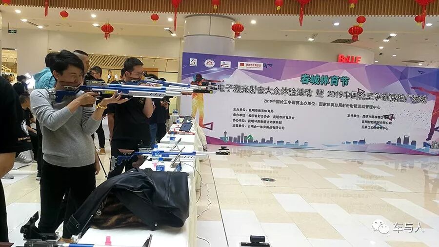 19日早上,昆明海伦国际大润发商场中庭人头攒动,2019昆明市第三届“春城体育节”全民健身电子激光射击大众体验活动暨云南“神射手”选拔赛,在这里如期举行,加上昆明定向越野联赛也同时展开,大润发商场中庭爆棚。