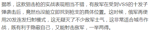 由于这款狙击步枪的隐蔽性和火力都相当不错,在俄罗斯的特种部队和执法部门均有配备。