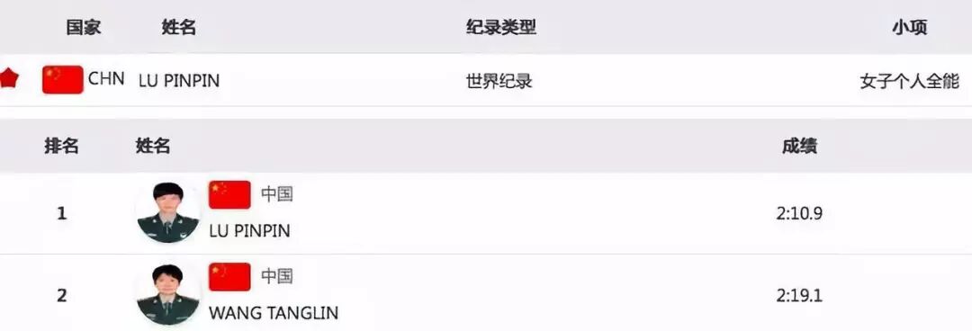 中国女选手卢嫔嫔以2分10秒90的成绩,