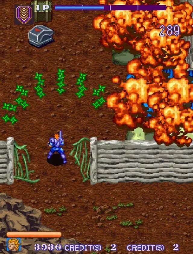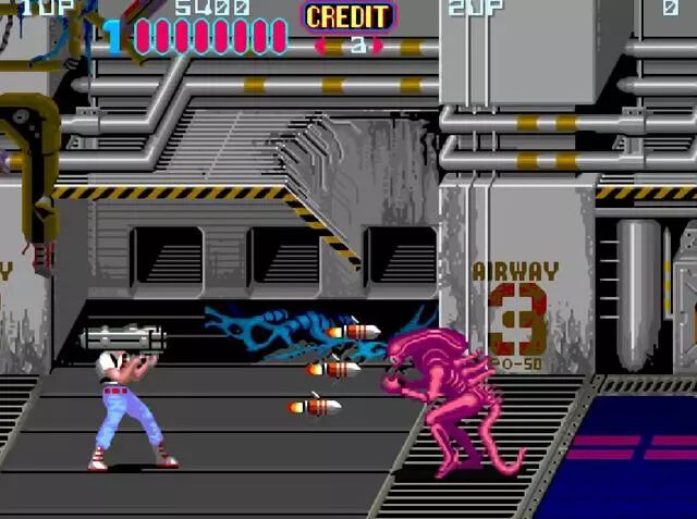 当年这款游戏没有玩家愿意合作,因为一个人容易通关,但是两个人的话很容易就被牵连而死。另外,游戏的空战篇也是射击游戏,不过是飞行射击,难度非常大,能过二关的都是大神。