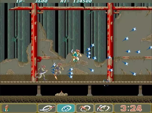 《落日骑士》和《怒之忍者》这两款游戏都是科乐美当年的巨作啊!两款游戏的玩法非常相似,仅仅是场景和人物,以及使用的子弹名字不同。这两款游戏当年在游戏厅都是比较火爆的,直到现在还有不少玩家在挑战一命通关。两款游戏中都是可以选择人物的,而且人物之间使用的武器也是不同的。
