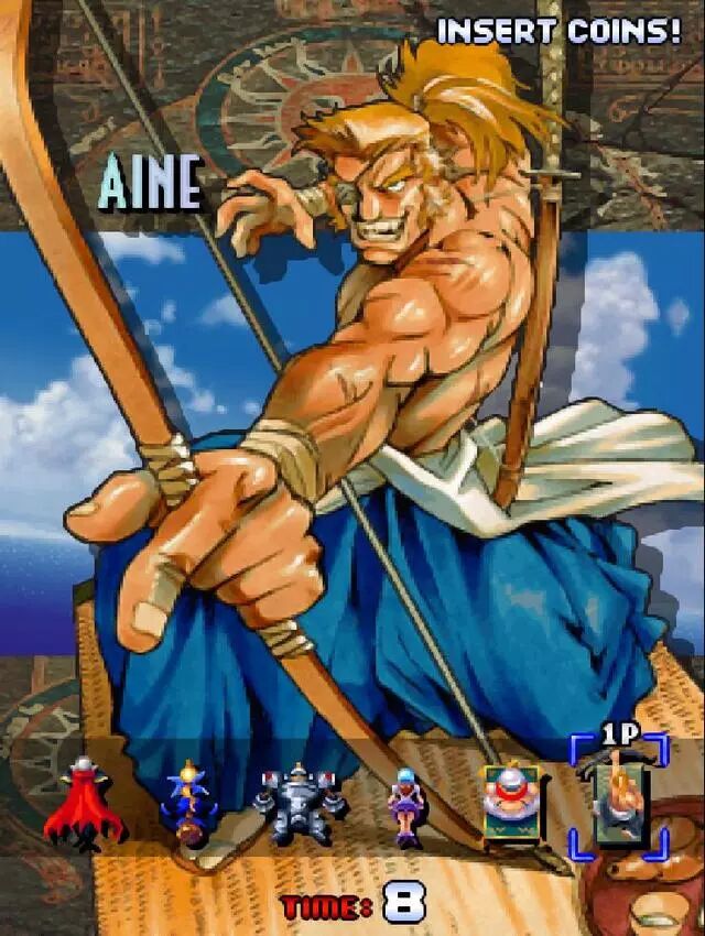 《武装飞鸟2》在这款游戏中阿伊仍然是隐藏角色,但是就算使用秘籍也不能选择,必须在机台中进行修改。当年游戏厅中的基本上都是修改好了的,玩家可以直接选择用这个人物。