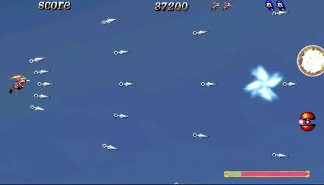 玛丽安的攻击方式和《武装飞鸟》差不多,不过为了符合横板过关也做出了相应的修改。同样是游戏中非常好用的
