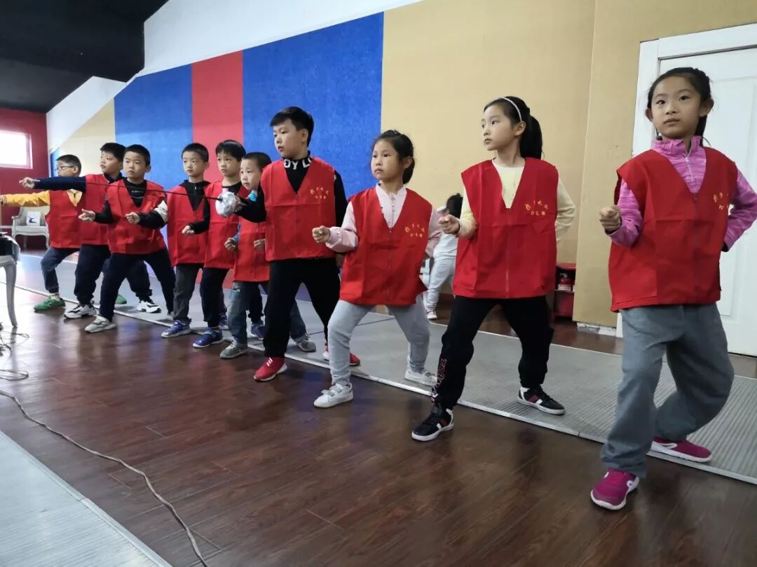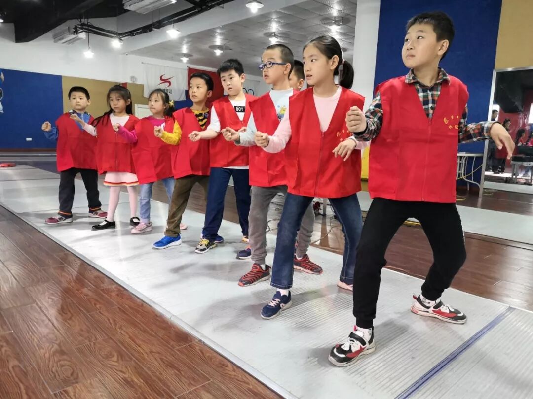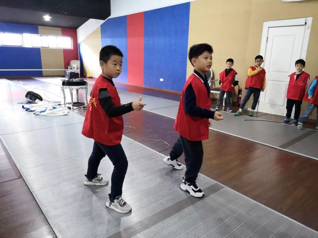 热身完毕后,教练带着小记者们学习击剑的姿势。在学习过程中,小记者也遇到了很多困难。击剑是一种优雅的运动,对于小记者的体态要求比较高,身体的灵活和平衡也同样重要,有些小记者在练习过程中难免出现同手同脚的情况。一开始总是难以掌握技巧,经过练习和教练的耐心指导,最终大家长进了不少,自己也十分高兴。
