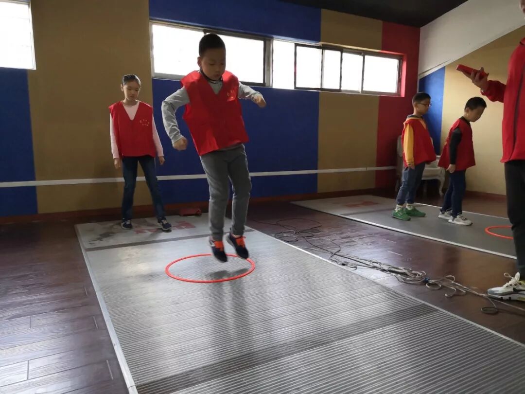 讲解完基础知识后,教练带着小记者们在场地上进行了一系列热身活动,大家虽然很辛苦,但个个乐此不疲,纷纷期待着后面的正式击剑环节。