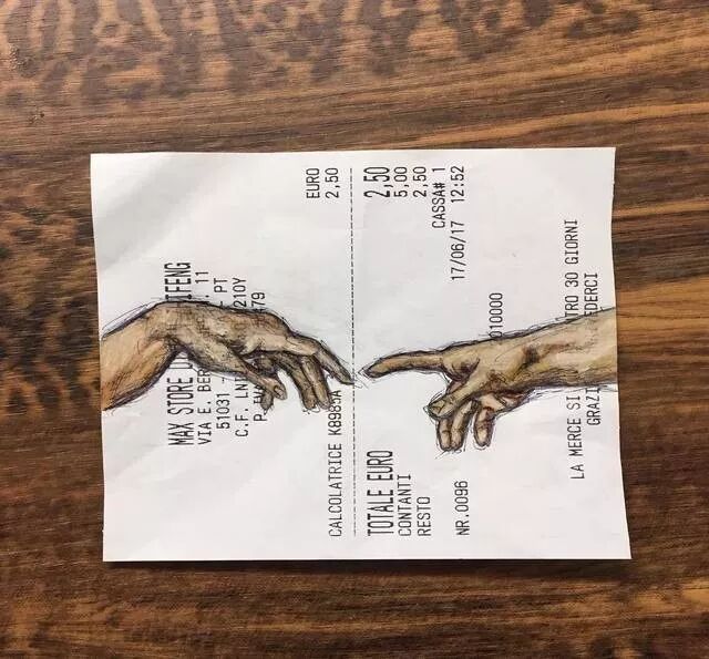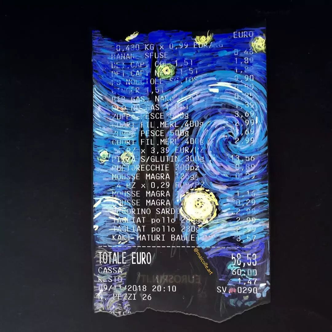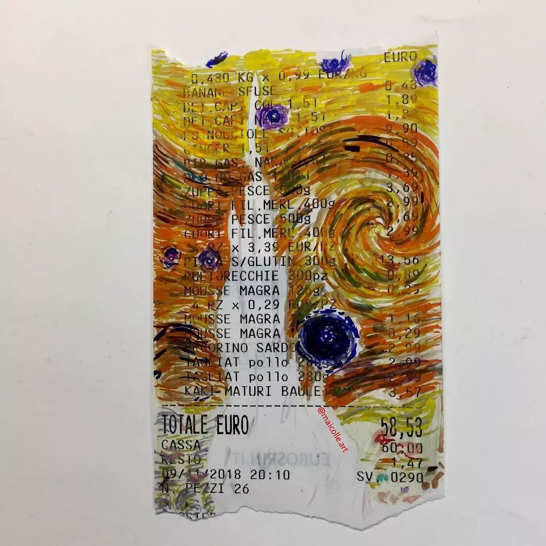 美术老师们把购物小票秒变成世界名画,真让你意想不到!
