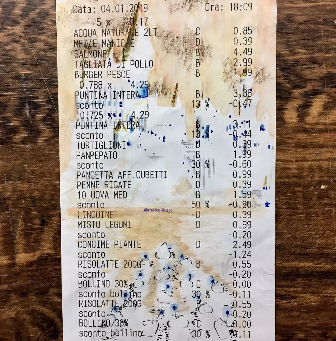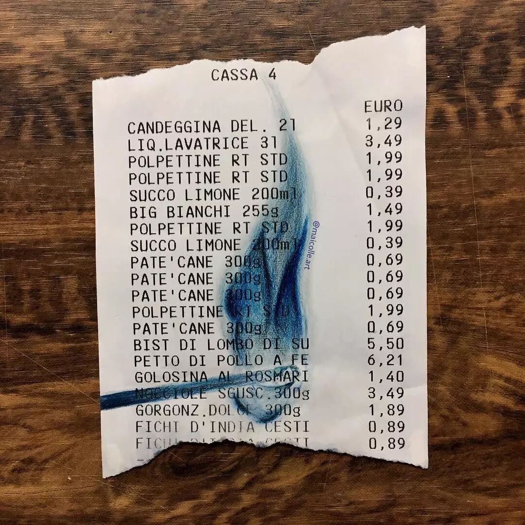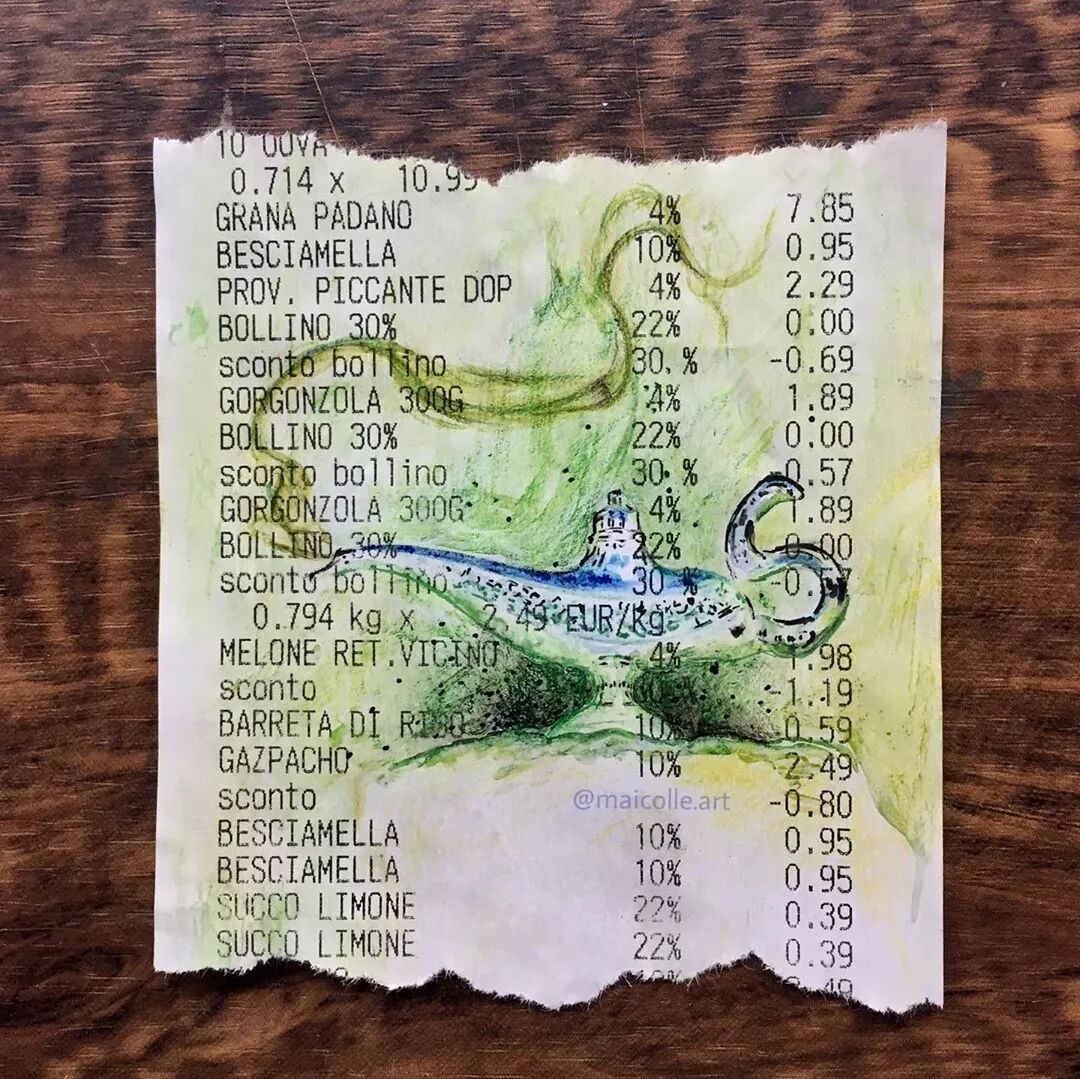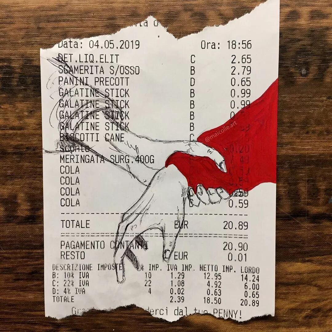 Michael Moccia 意大利插画师她在平日里有一个持续了很久的小创作就是在购物小票上画画