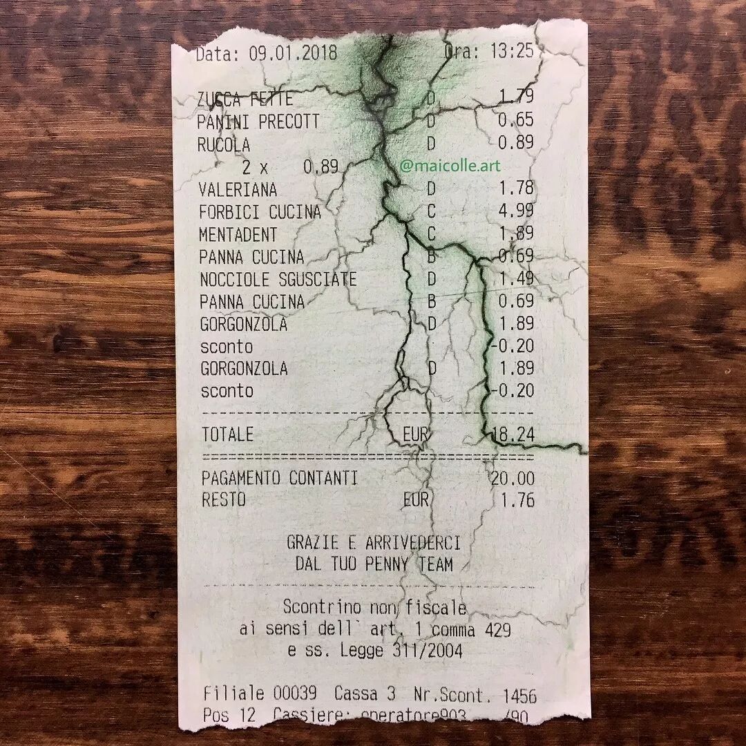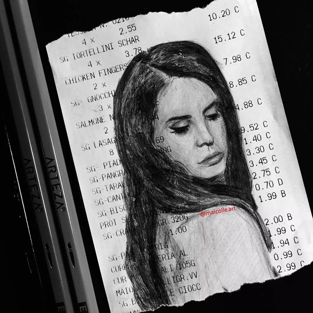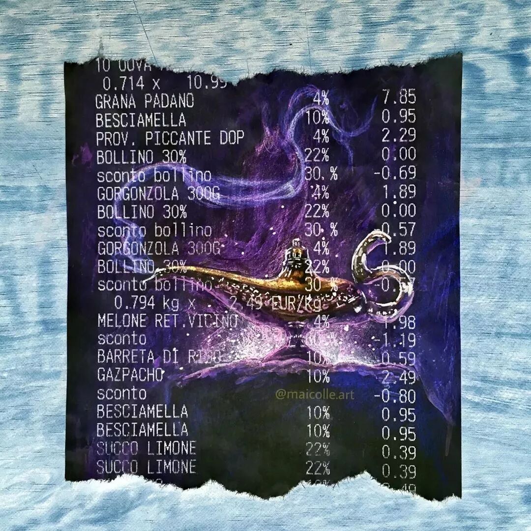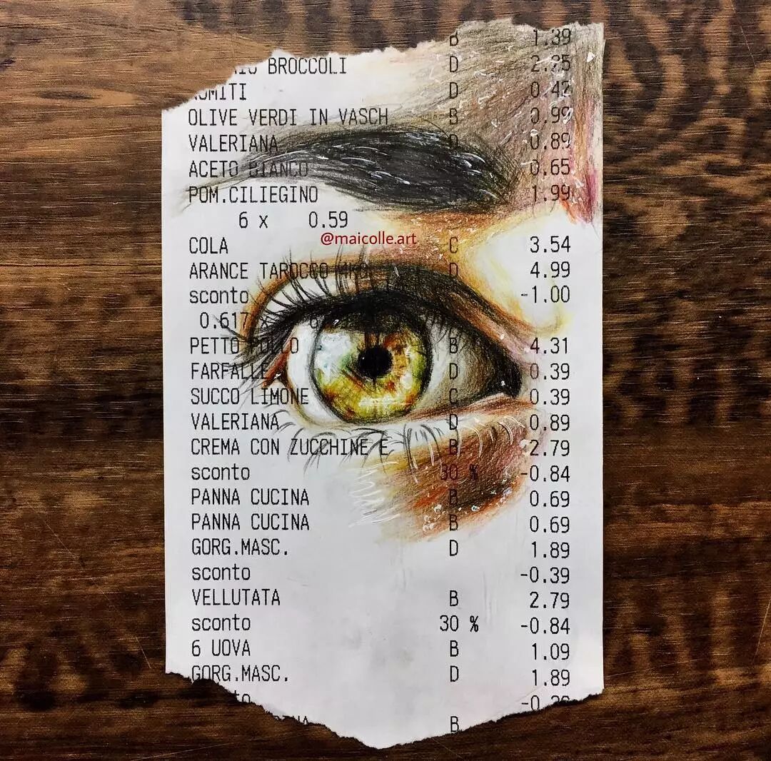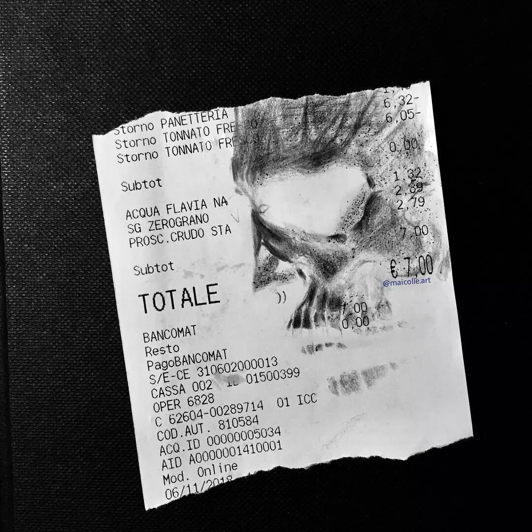 Michael Moccia 意大利插画师她在平日里有一个持续了很久的小创作就是在购物小票上画画