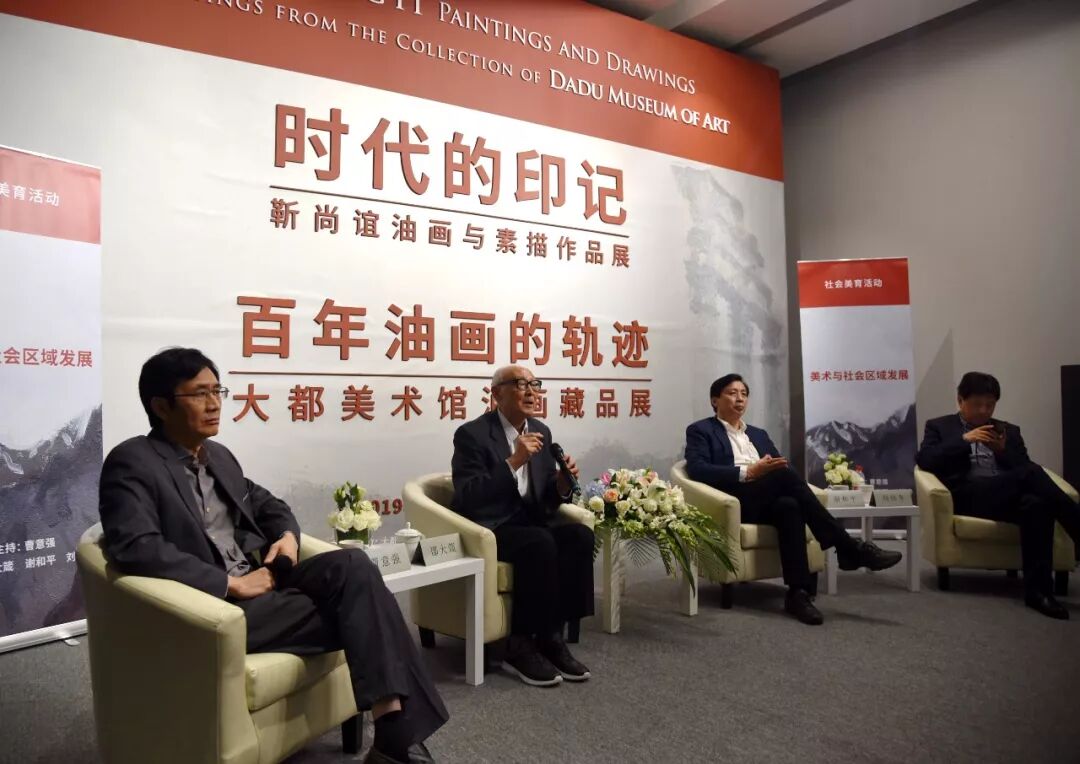 10月20日上午,备受文化艺术界瞩目的“时代的印记——靳尚谊油画与素描作品展”和“百年油画的轨迹——大都美术馆油画藏品展”在山东潍坊十笏园文化区揭开帷幕。开幕式结束后,一场以“美术与区域社会发展”为主题的高端论坛在十笏园文化街区全国书画名家展示馆一楼举办,中国工程院院士、深圳大学深地科学与绿色能源研究院院长、中国教育书画协会副会长、原四川大学校长谢和平,中国国家画院理论研究院院长、中央美术学院教授邵大箴,南京艺术学院院长刘伟东,中国艺术教育研究院常务副院长、大都美术馆馆长曹意强四位专家就“美术与区域社会发展”问题 ,围绕“区域城市对艺术与创造性品质”、“艺术与产业”等深层思考, 与大众进行了交流探讨。
