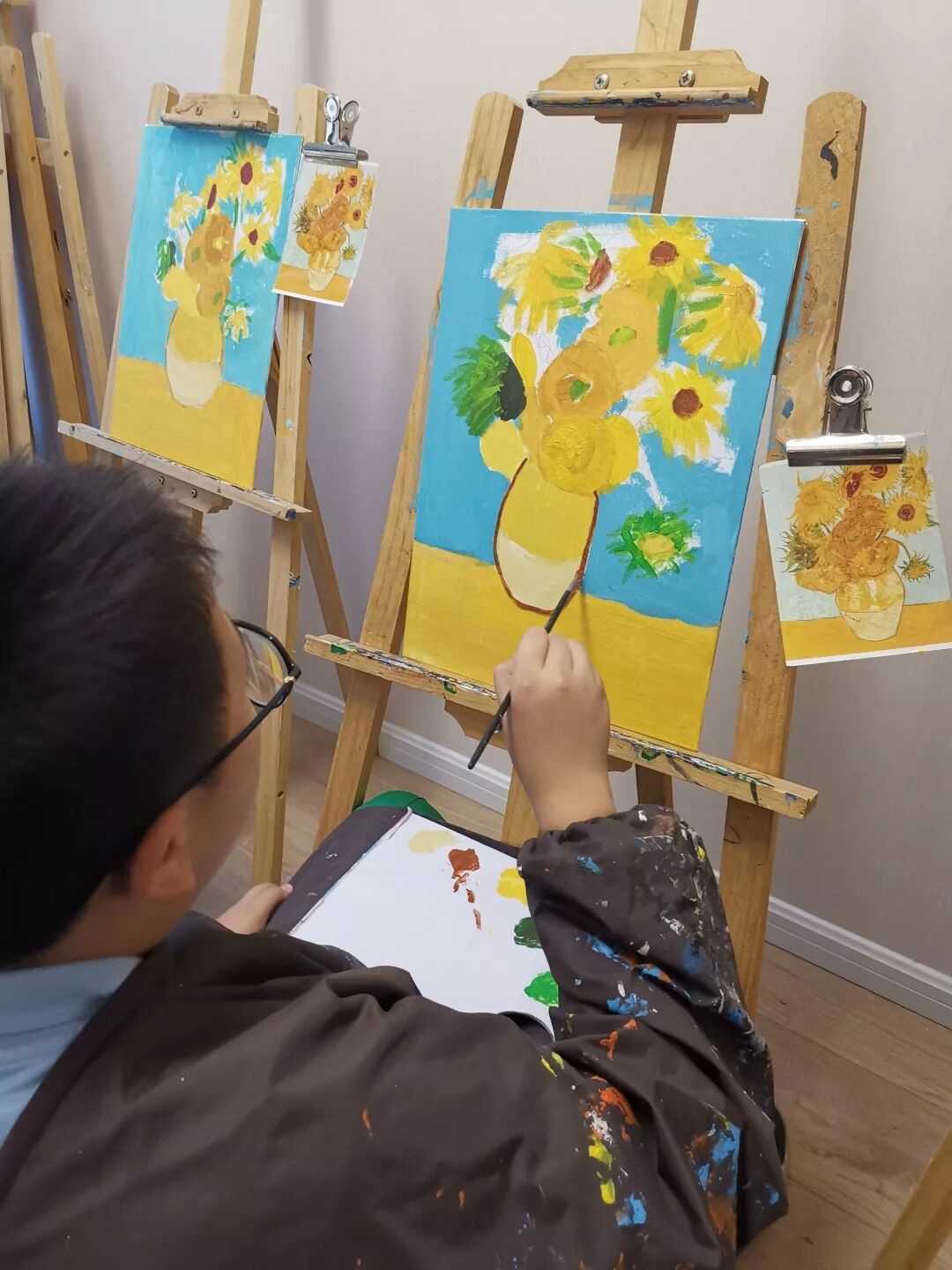 学习用丙烯绘画向日葵,临摹大师作品,向日葵象征阳光,蓬勃的生命力,感受他作画的目的。