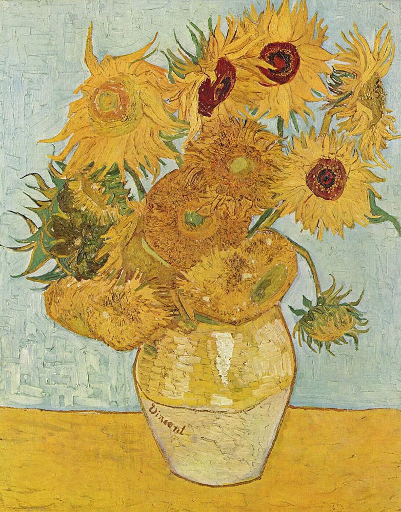 《向日葵》是对时代变幻莫测的礼赞,它充满活力的色彩孑然一改17世纪以来荷兰花卉绘画的悠久传统。