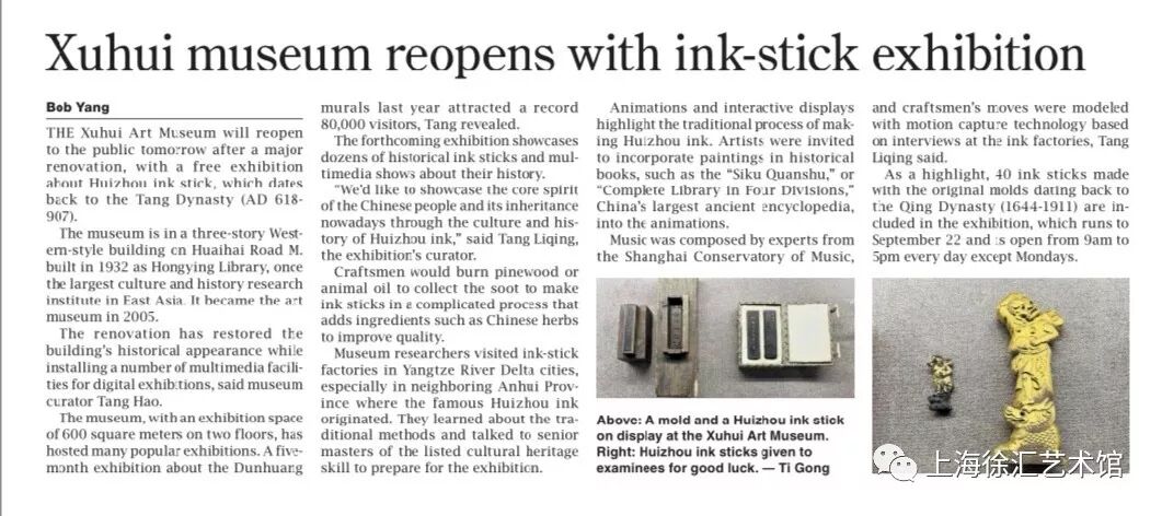 详情链接:徐汇区艺术馆《乌金千秋照——徽墨专题展》入选2019年全国美术馆青年策展人扶持计划