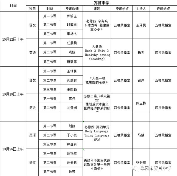本次高二年级学科联科教研“同课异构”校际公开课是在界首市教育局教研室指导下,由我校与一中联合承办的一项重要教学教研交流活动。本次活动在每周六上午举行,为期三个月。
