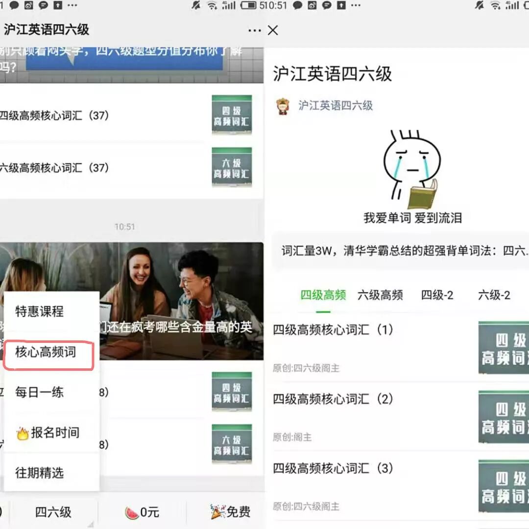往期高频词汇戳本号【菜单】-【四六级】-【核心高频词】