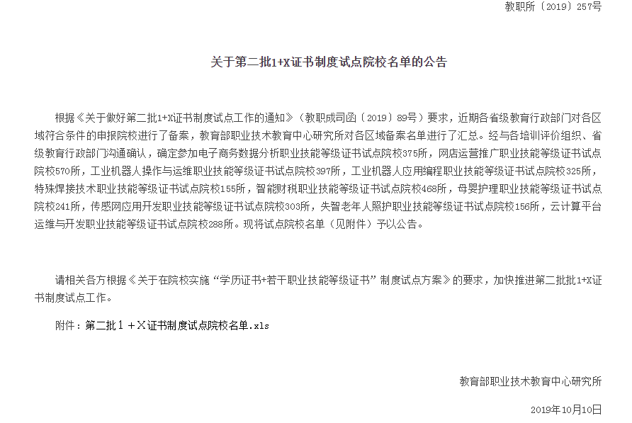 近日,从教育部获悉,湖南生物机电职业技术学院继首批成功申报"汽车运用与维修、智能新能源汽车”1+X证书制度试点后,“工业机器人操作与运维”再次成功申报教育部第二批1+X证书制度试点。