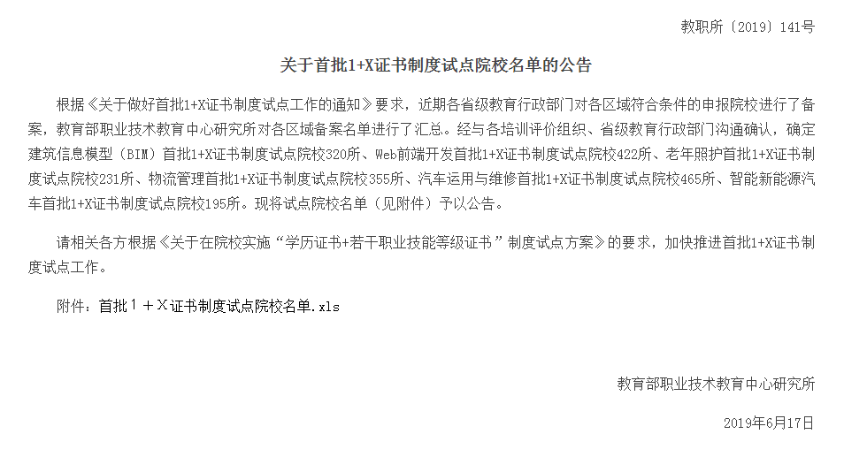 1+X证书是为了深入贯彻落实全国教育大会精神,完善职业教育体系和培训体系,提高人才培养质量的重要举措。湖南生物机电职业技术学院党委行政高度重视,在接到申报通知后,积极参与,科学论证,认真组织申报,成立“1+X”试点工作领导小组,由专门的工作部门深入研究职业技能等级标准与有关专业教学标准,对接产业,建机制,整合资源,搭建产学研育人平台,组建专业群,完善人才培养方案,教学内容更新对接技术进步, 开发特色教材,改革人才培养方法,深化复合型技术技能人才培养培训模式改革,努力提升人才培养质量,从而加快推进我院 1+X证书制度试点工作。