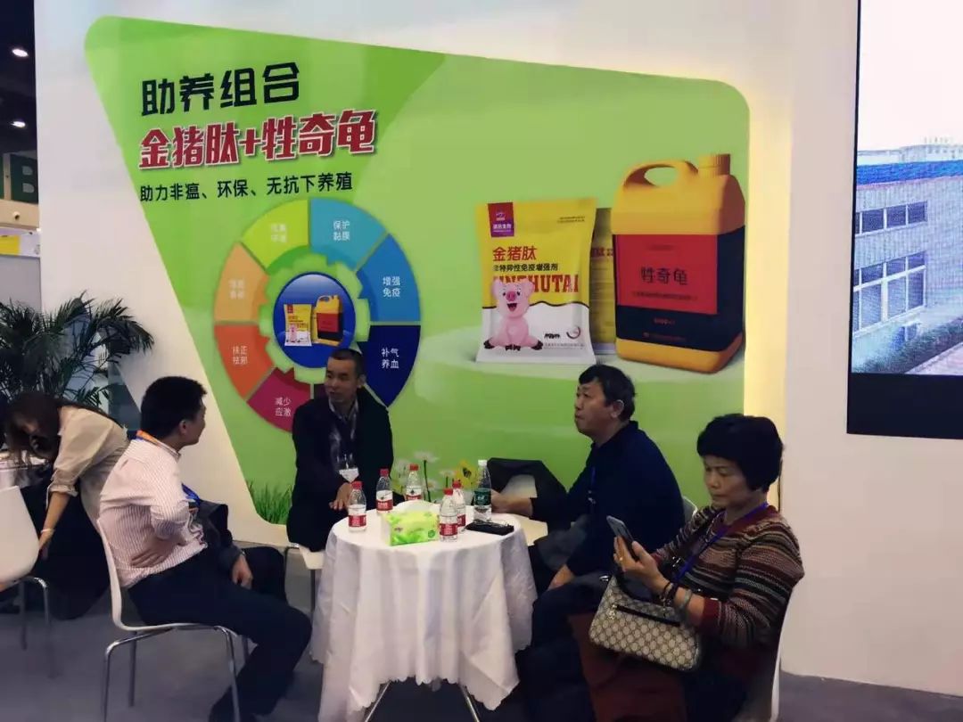 派尼生物药业这次主要展出的产品除了老牌明星产品:苞珑、康恩诺、种维健、免疫双抗,还为大家带来了惊喜——新的研发产品:助养组合方案(金猪肽+牲奇龟),意在“非瘟”和“减抗”的新常态下,为养殖业提供新的、无抗、有效的疾病预防与解决方案,助力养殖业走向更健康、更好的明天。