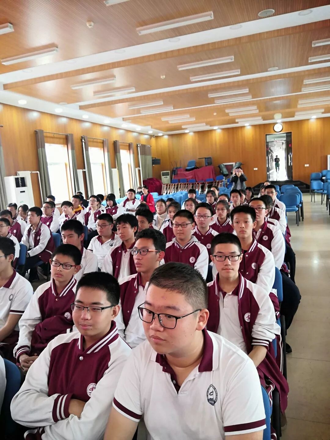 同学们正在认真聆听专家的讲座,郭亮老师通过有趣的小故事,带领同学们进入力学的世界。