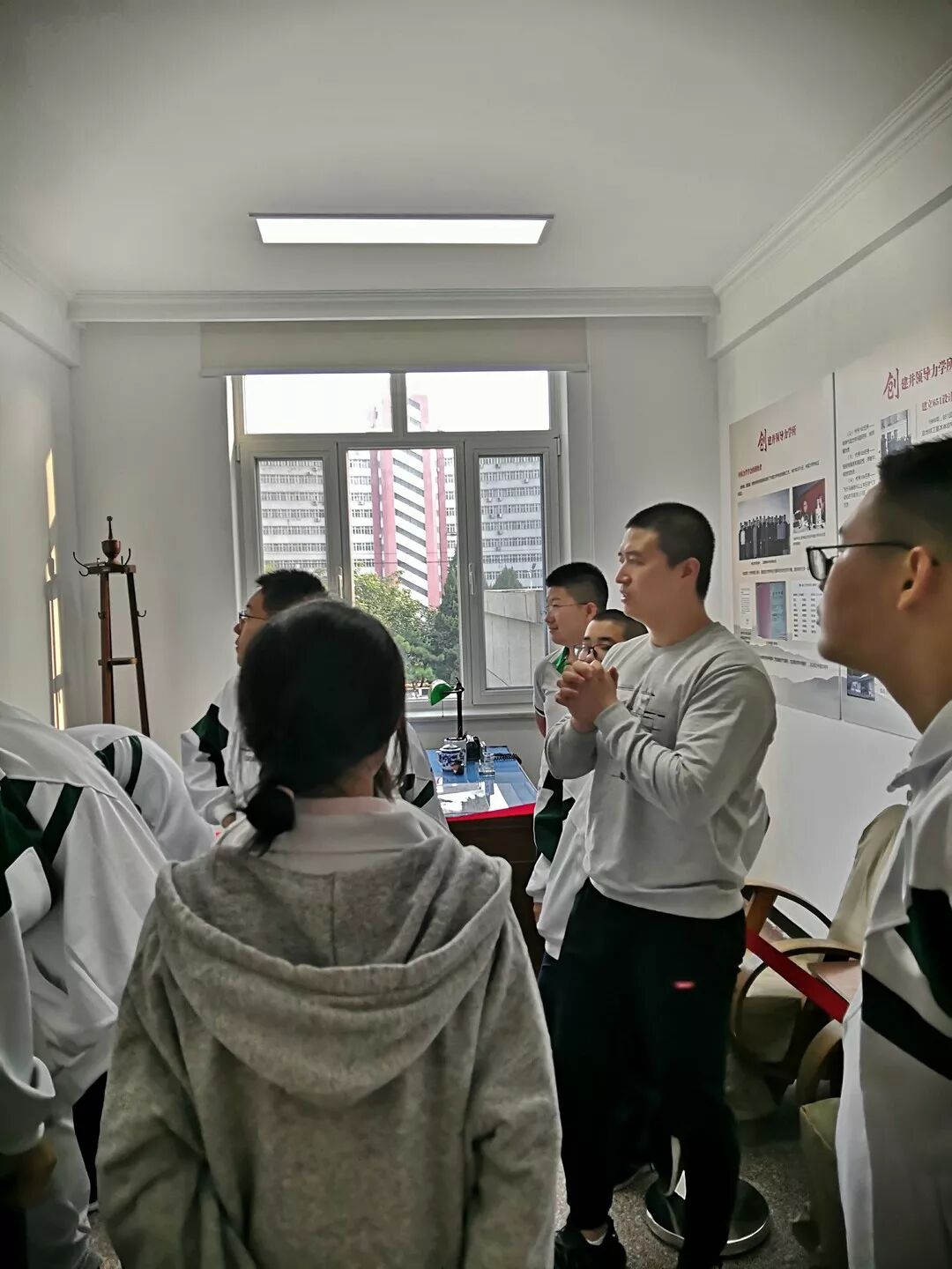在力学研究所参观时,同学们来到了钱学森先生和郭永怀先生办公过的办公室。让大家惊叹不已的是,这里还保存着以前的旧样。古旧的办公桌,深色的衣架,旁边的玻璃展柜中还有两位先生生前用过的物品,同学们在驻足欣赏中也仿佛回到了过去,触碰到这些伟人生活中的一角。