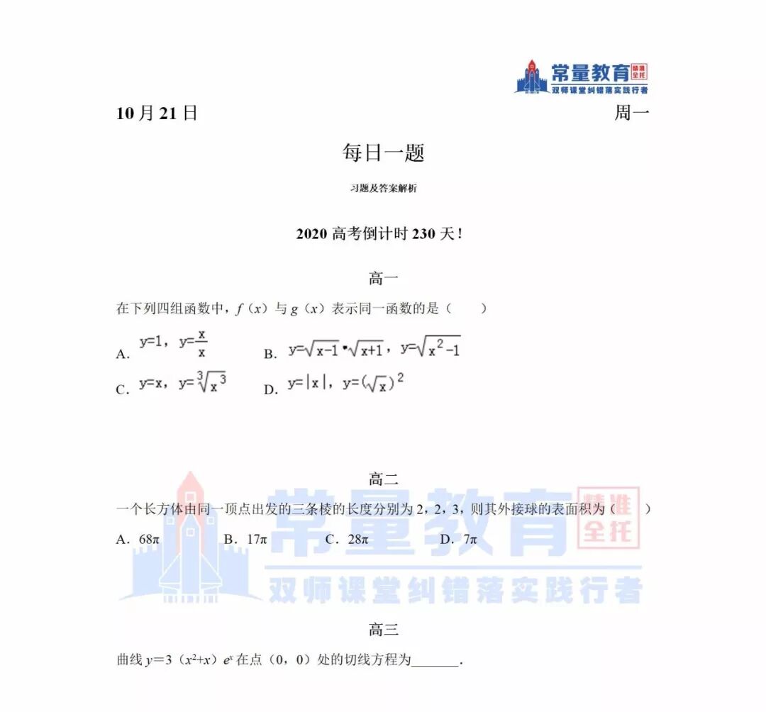高中 | 每日一题(数学语文英语)