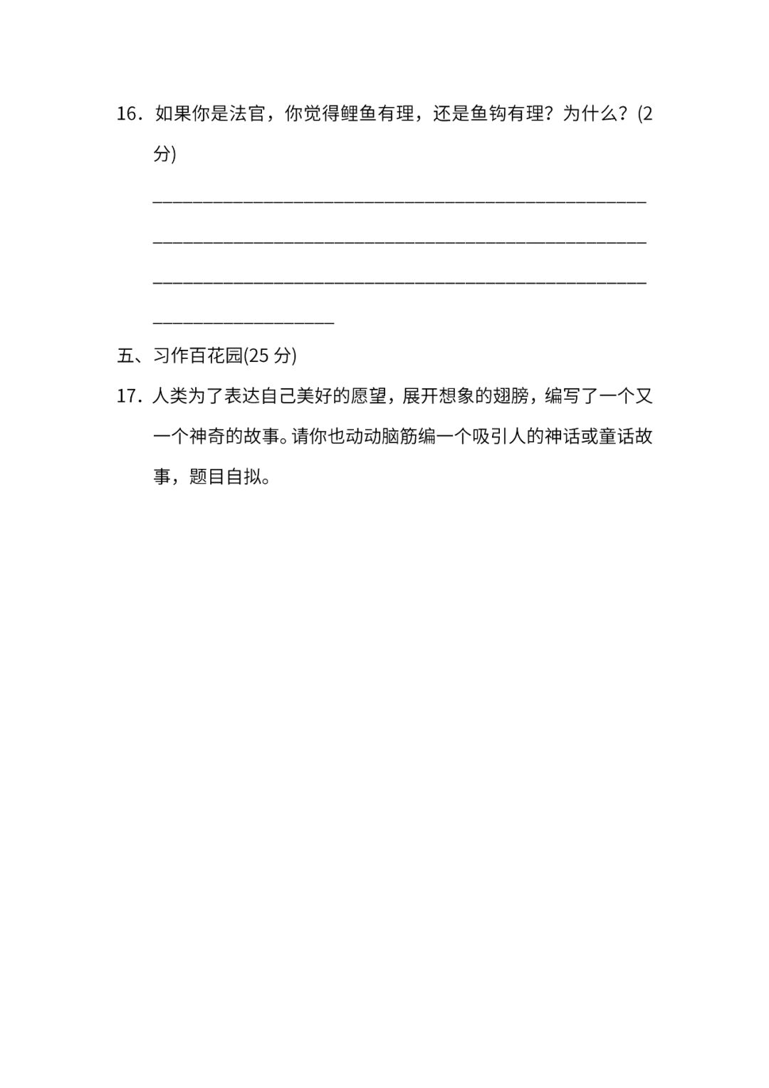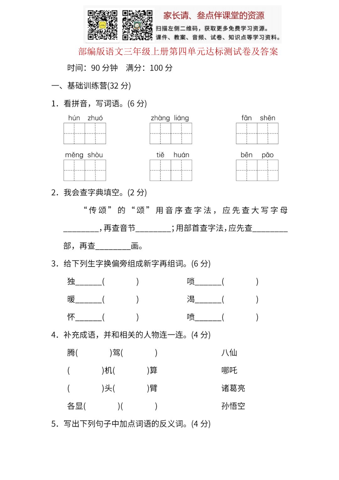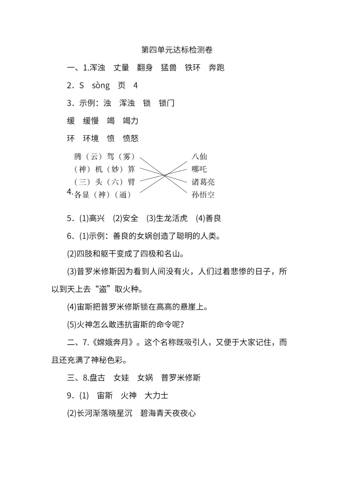 部编版语文四年级上册第一单元测试卷及答案第二单元