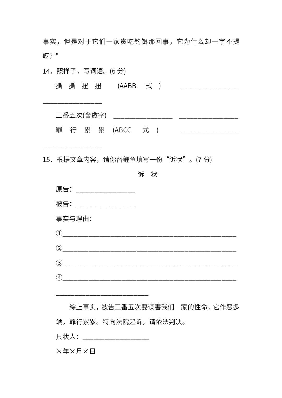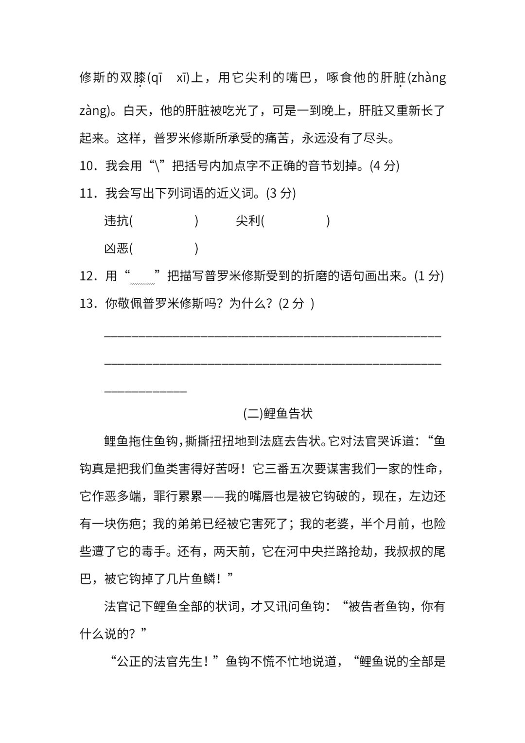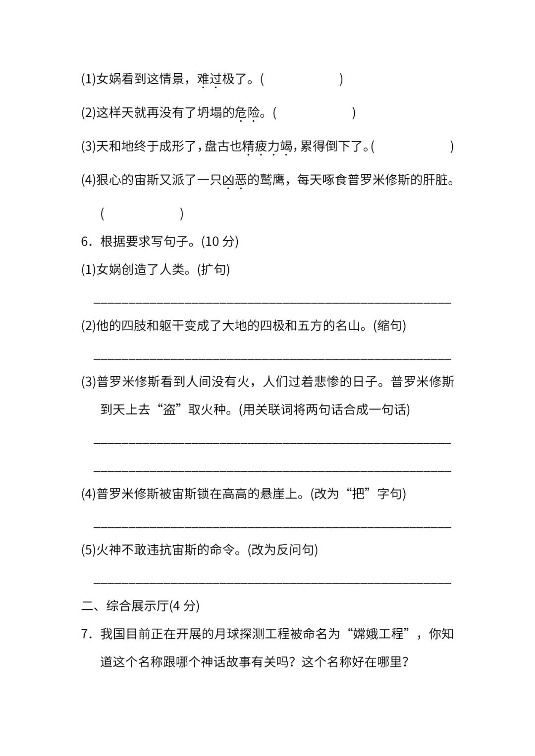 部编版语文四年级上册第一单元测试卷及答案第二单元