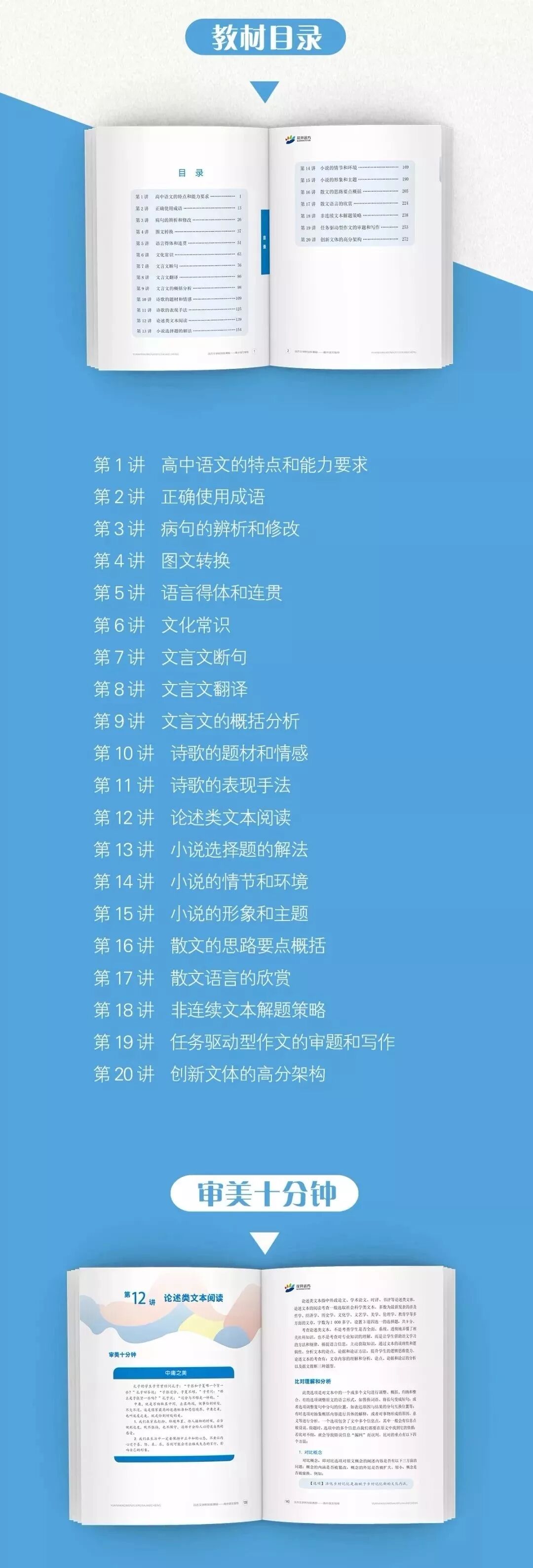 ①指导学生宏观了解高中语文课程体系和教材结构,高屋建瓴地对待高中语文学习。
