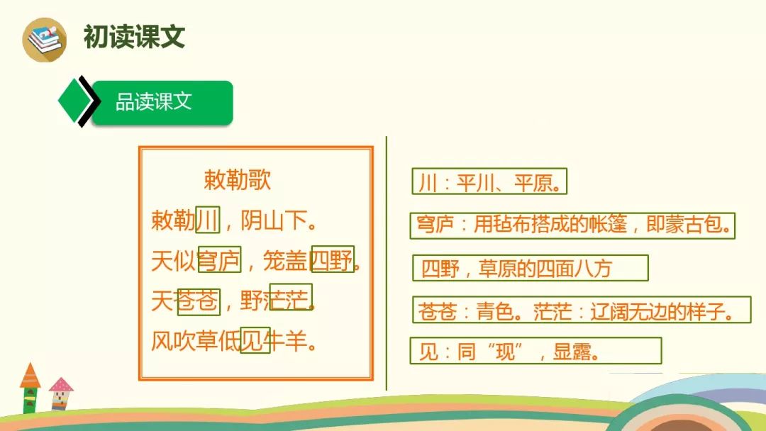 2.《敕勒歌》描写了哪些景物?给我们呈现的是什么画面?