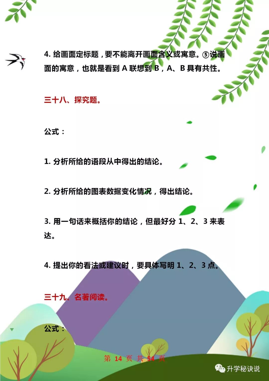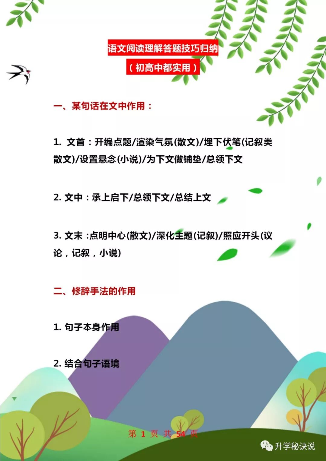 所以接下来,我就特意分享一份关于初高中语文的阅读理解的答题技巧,非常的实用,这“鬼才”老师:语文阅读理解编成“1张表”!中学6年“0”扣分!家长们可以替孩子打印一份出来学习。