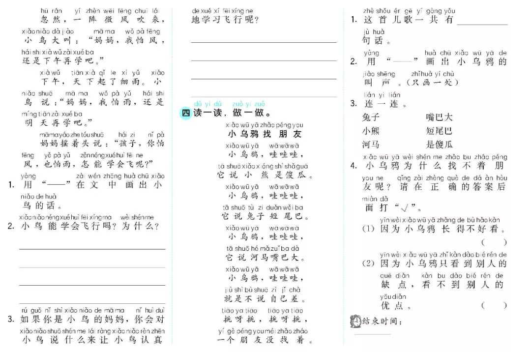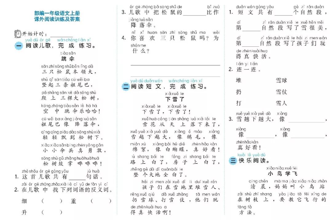 语文好课堂:部编语文小学一年级上册课文检测与巩固资料(更新中)