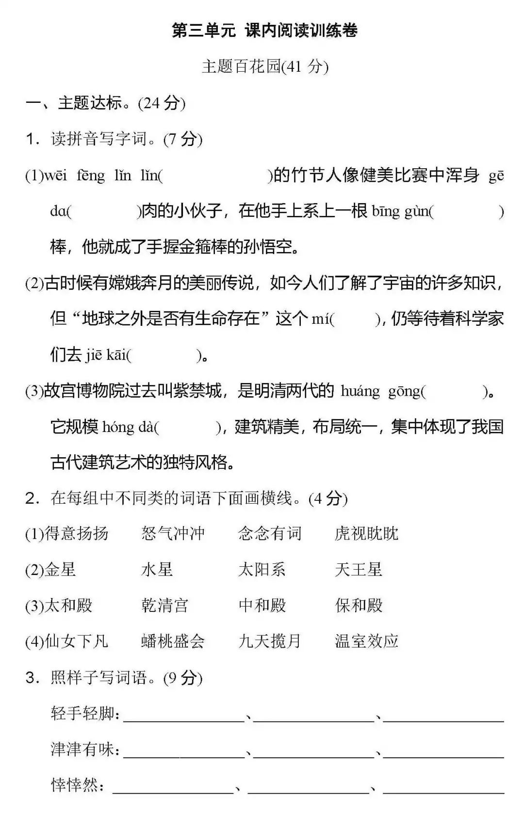 语文好课堂:部编语文小学三年级上册课文检测与巩固资料(更新中)