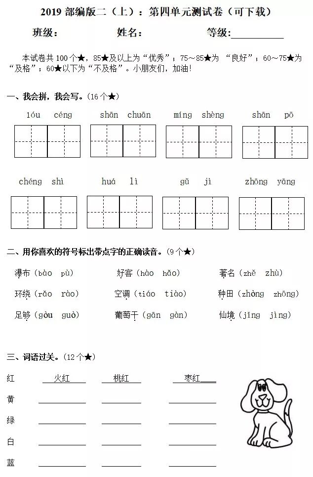 大家好!我是小语老师。为了让孩子能更好的巩固每单元知识点,小语老师为大家整理了单元测试试卷,建议各位老师或家长领取打印给孩子练习!练习均包含参考答案哦~