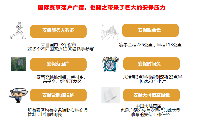 全面落实各项安保工作任务1做好赛事期间交通管制工作,引导人员及车辆的通行、停放2加强比赛期间社会治安管理,确保主赛场和住地安全3做好路段划分和点位设置,安排警力、其他单位执法人员和志愿者