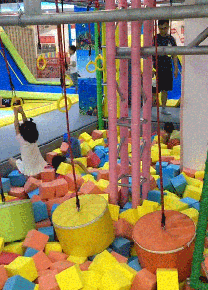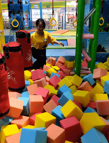 还可以来个花式入池纵身一跃,翻滚着跳入海绵池感觉掉进了世界上最温柔的怀抱炫酷又好玩~