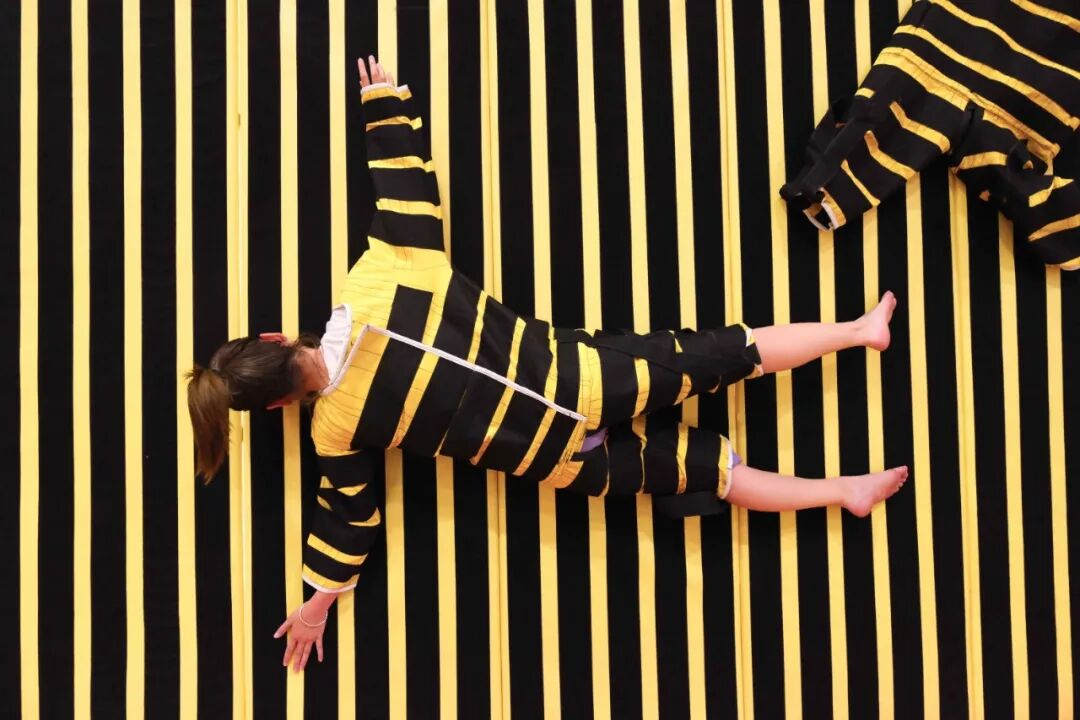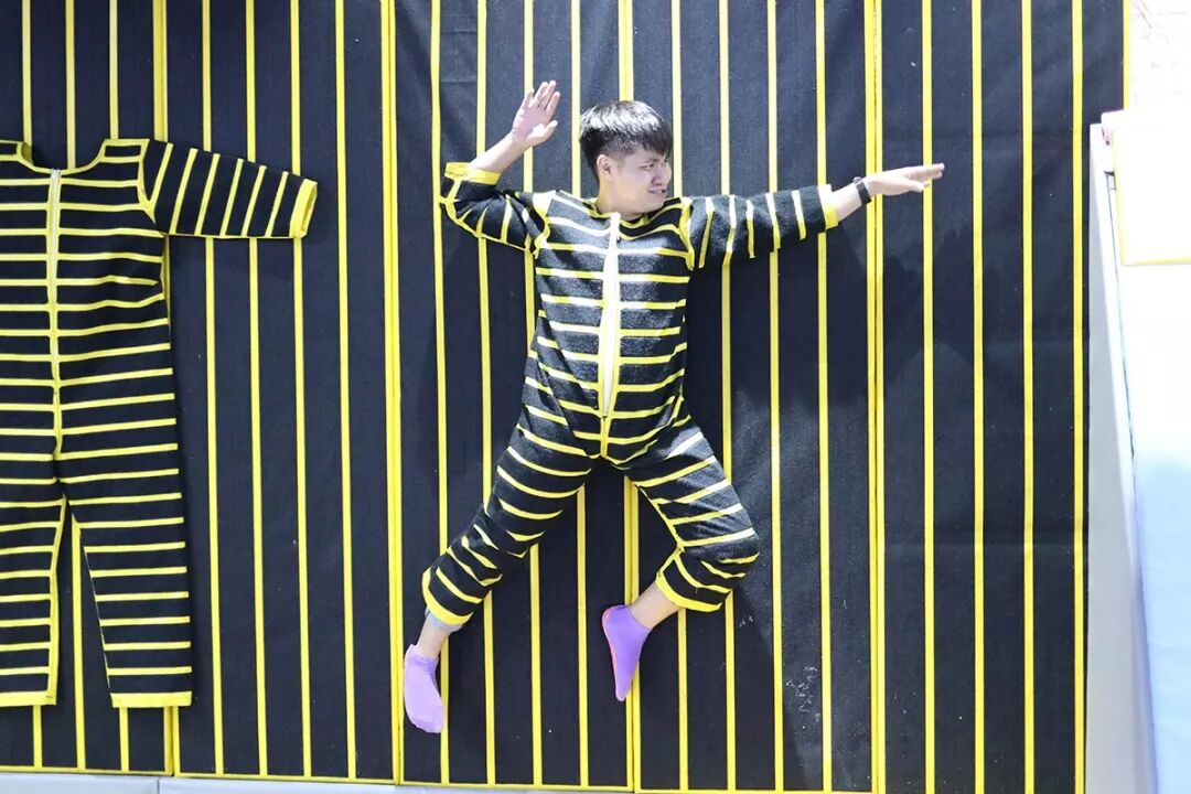 抖音同款网红黏黏墙在蹦床上轻轻一蹦,面向墙高高跃起身体瞬间以各种奇妙姿势定在半空