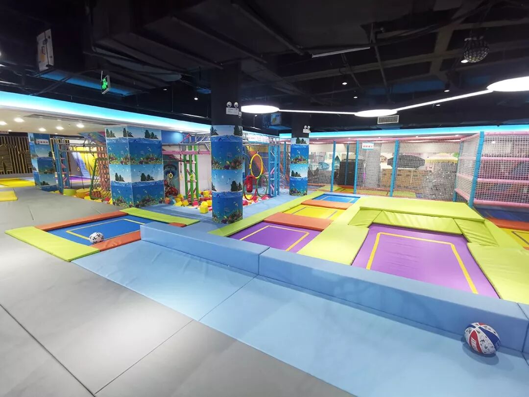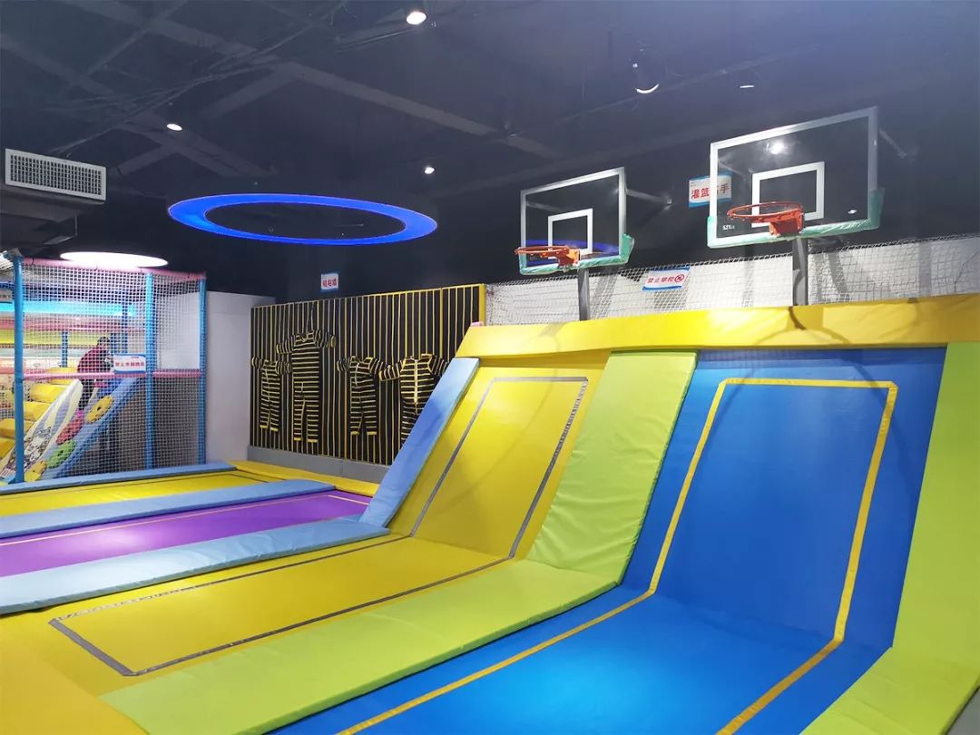 旋转跳跃、空中翻滚、自由飞翔在这里想怎么来就怎么来超大一片的蹦床区域