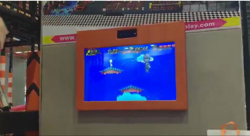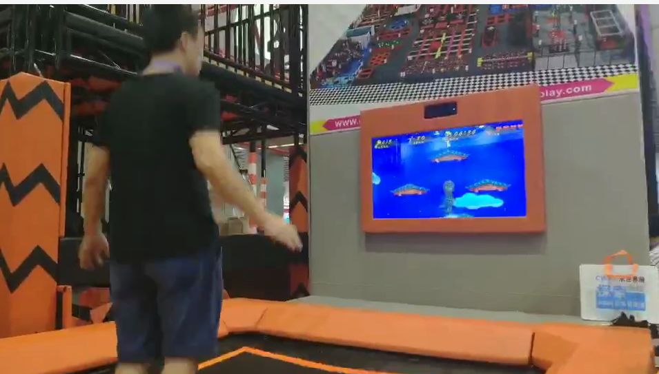 体验者只需要站在投影感应范围内的蹦床,通过肢体活动就可以简单控制投影的游戏。