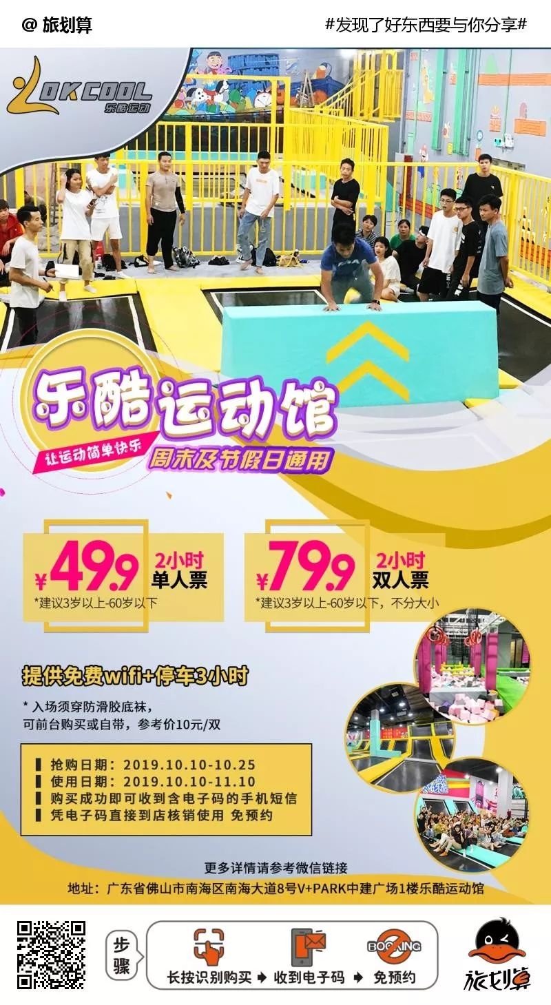 地址:广东省佛山市南海区南海大道8号V+PARK中建广场1楼乐酷运动馆电话:0757-86369966营业时间:10:00-22:00◆ 无需预约,如遇消费高峰时段您可能需要排队◆ 店内主题区域:自由蹦床、自由弹跳、充气碰碰球、躲避球、蹦极球、蹦床大冲关、奥运体育蹦床、空气气垫、花式灌篮、障碍闯关、攀岩、弹跳迷宫、生日派对房、丛林主题房、星空隧道、高空漫步、空中滑翔、镭射CS竞技、网红蜘蛛塔、海绵池、垂直滑梯、旋转滑梯、创意弓箭◆ 场内不可以自带餐饮,禁止穿鞋入场,禁止乱丢垃圾,禁止吸烟,看护好自己的小孩等◆ 乐园一旦确认核销,兑换门票后,电子码短信立即失效