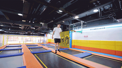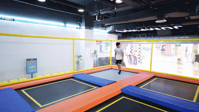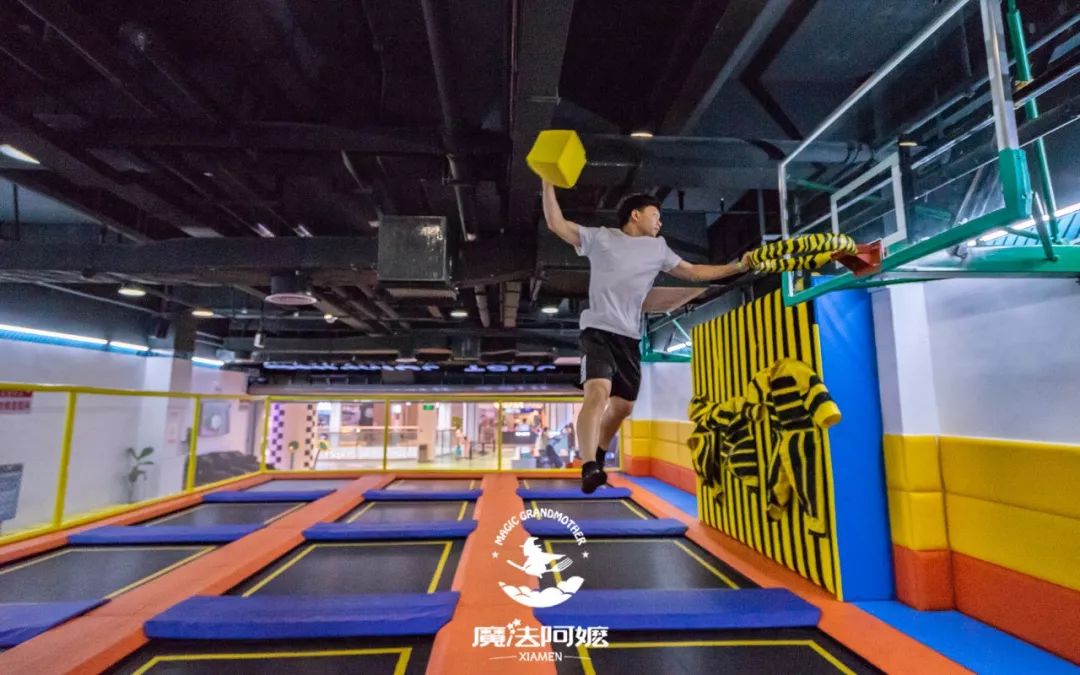 男生来这里还可以借助蹦床