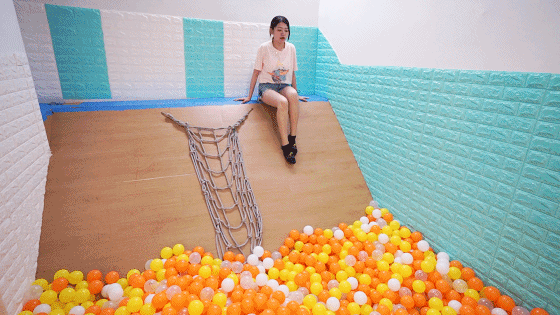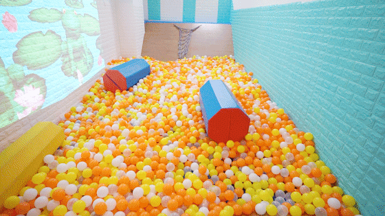 顺势滑下被海洋球包围的感觉太棒了!