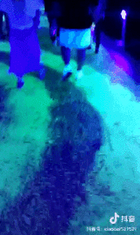 整个荧光跑道每隔500米会有距离提示,路边可以捡到荧光的小石头,可以用手机的手电筒画画,也可以用路边的小石头摆个图案。