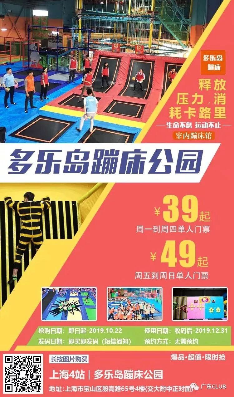 【上海宝山站】多乐岛蹦床公园 燃烧你的卡路里 39/49元限时抢购
